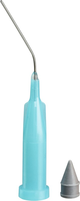 NeedleTube 19G – Eine Karpule mit einer biegbaren, stumpfen 19G Nadelspitze, für das höchstpräzise Einbringen von leicht zähfließenden Materialien wie Zemente, Unterfüllungsmaterialien, Stumpfaufbaumaterialien und andere gelartige Materialien. Besonders hilfreich für das Injizieren von Materialien in Wurzelstiftkavitäten und tiefe approximale Kästen.