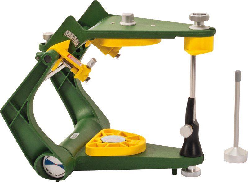 SAM® SE Artikulator „Special Edition“ (Hochleistungskunststoff aus der Flugzeug- und Automobilindustrie) mit einer fest eingebauten Curvatur 1 und Bennettführung mit normaler Sideshift, Inzisaltisch plan (ART 275).