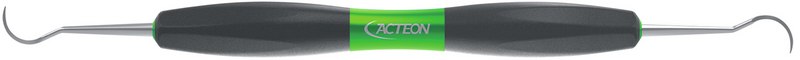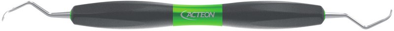 Die Ergonomie und die Leistung des metallischen Arbeitsteils ermöglichen eine kontrollierte und feste Geste und zielen darauf ab, die Ermüdung von Hand und Handgelenk zu verringern. Die Sicheln haben einen dreieckigen Querschnitt und zwei Schneidkanten, um einen interproximalen Zugang für Vorder- und Seitenzähne zu ermöglichen. Das dünne Anschlussende der Klinge erhöht den Zugang in schwer zugänglichen Bereichen.