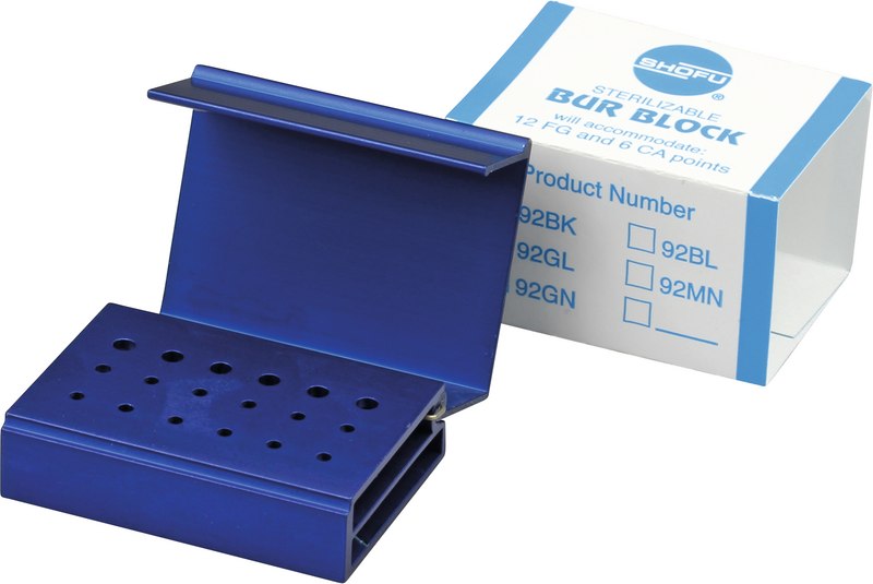 Der praktische Schnappverschluss des Bur Block schützt die aufgenommene Sortierung der Instrumente; die offenen Seiten ermöglichen ein vollständiges Desinfizieren und Sterilisieren von bis zu 18 Instrumenten (12x FG und 6x RA). Je nach Arbeitsfeld (Kavitätenpräparationen etc.) lässt sich so ein eigener farbcodierter Instrumentensatz erstellen.