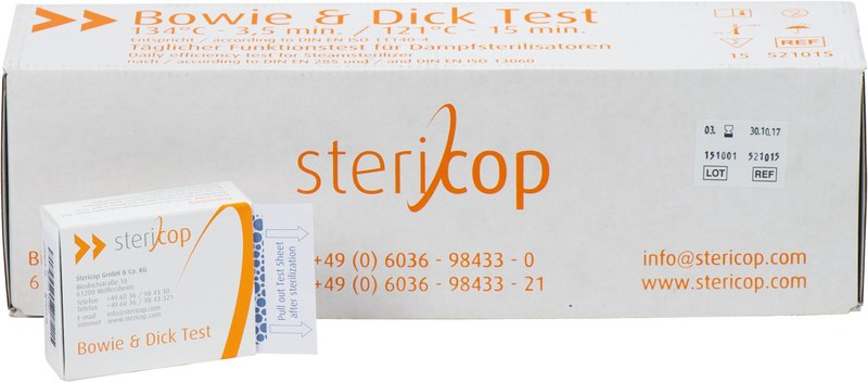 Bowie & Dick-Test Täglicher Funktionstest für Dampfsterilisatoren nach DIN EN 285 und DIN EN 13060.