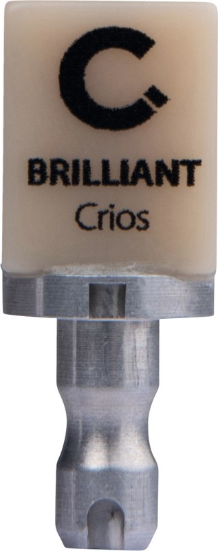 BRILLIANT Crios ist ein Reinforced Composite Block für permanente Restaurationen. Er wird mit CAD/CAM Geräten für die Chairside-Herstellung indirekter Restaurationen verwendet. BRILLIANT Crios wird in 9 Low- und 4 High-Transluzenzstufen in den Größen 14 und 12 angeboten und ist kompatibel mit Sirona Geräten (CEREC und inLab). Es ist geplant, mit weiteren Systemanbietern zusammen zu arbeiten. Indikationen
