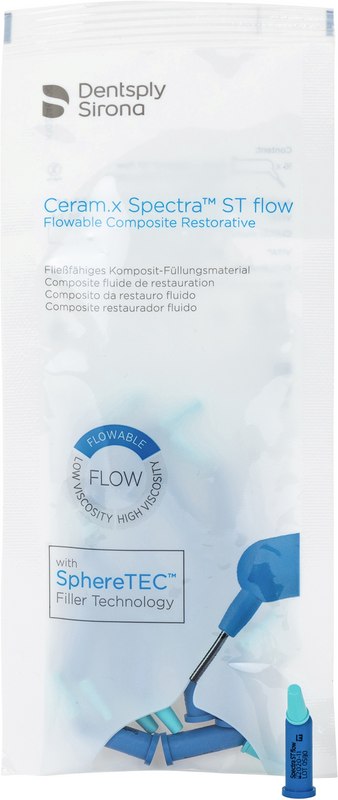Ceram.x Spectra™ ST flow ist die ideale Ergänzung zum Universalkomposit Ceram.x Spectra™ ST und basiert ebenfalls auf der SphereTEC® Füllstofftechnologie. Es wurde speziell dafür entwickelt, die für den Behandler wichtigsten Bereiche zu optimieren: Handhabung, Ästhetik und Langlebigkeit. Ceram.x Spectra™ ST flow ist in insgesamt 5 Farben verfügbar, sowohl in Compula® Tips als auch in Spritzen.