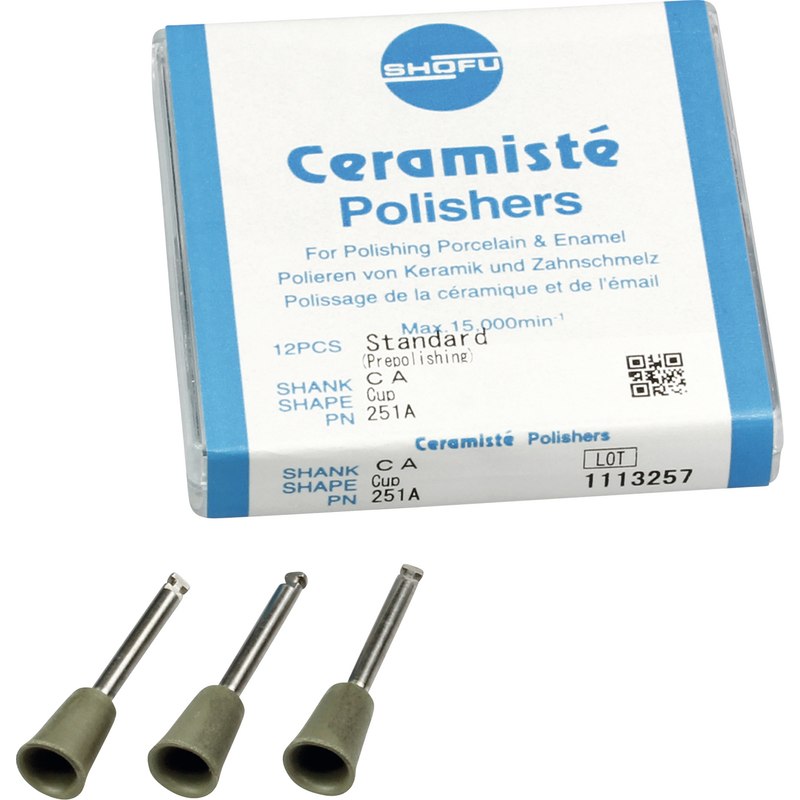 Die Silikon-Systempolierer wurden speziell für die Politur von Keramik und Zahnschmelz entwickelt. Mit Ceramisté Standard, Ceramisté Ultra und Ceramisté Ultra II stehen Instrumente für jede Polierstufe bis zum Hochglanz zur Verfügung.