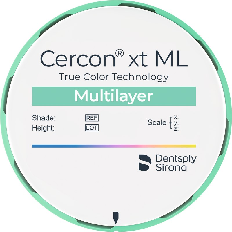 Cercon® xt ML – Extra transluzentes Multilayer Zirkonoxid. Die neue Multilayer Klasse verspricht monolithische Restaurationen auf höchstem Niveau. Perfekter, naturgetreuer Farbverlauf: Entspricht der Ästhetik eines natürlichen Zahnes ganz ohne Verblenden oder Bemalen. Insbesondere geeignet für den Frontzahnbereich (Biegefestigkeit 750MPa). Garantierte Farbsicherheit: Unübertroffene Farbsicherheit für alle 16 Vita Farben und BL2. Einfache Handhabung: Leicht zu nesten, identische Fräs- und Brennprotokolle wie bei allen Cercon-Zirkonoxidprodukten.