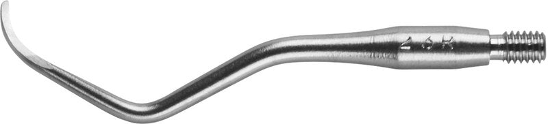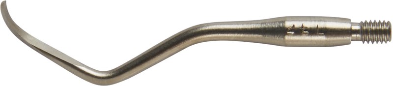 Wirksam ohne zu beschädigen: Die Implantatküretten bestehen aus purem Titan und sind etwas weniger hart als das Implantat, zur schadlosen Anwendung. Universalkürette aus Titan zur Zahnsteinentfernung an Titanimplantaten.