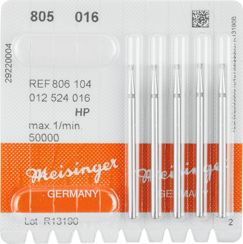 MEISINGER Diamantinstrumente bestehen im Kern aus einem Schaft und einem gehärteten, rostfreien Profilkörper, der mittels modernster Galvanotechnologie nur mit ausgewählten natürlichen Diamantkörnern belegt wird. Dies garantiert eine äußerst homogene, sichere und nachhaltige Diamantierung der Instrumente und damit optimale Arbeitsergebnisse. Diese werden außerdem durch die Auswahlmöglichkeit des Anwenders aus bis zu sieben verschiedenen Korngrößen garantiert.
