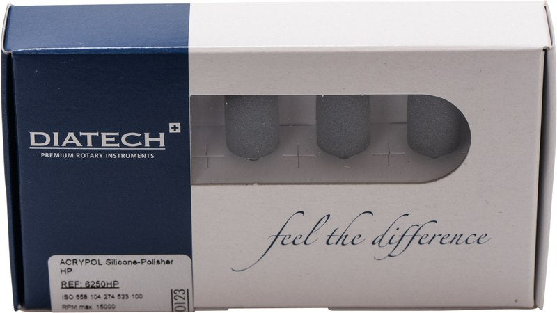 Für das Finieren und Polieren von Total- und Teilprothesen aus Akrylaten und Metall-Legierungen, sowie von orthodontischen Apparaten. Benützen Sie die drei Stufeneinheiten der Akrylat-Polierer wie folgt: Stufe 1 (grob) - Acryprepol –> für das Retuschieren. Stufe 2 (mittel) - Acrypol –> für das Polieren. Stufe 3 (fein) - Acryshine –> für die Glanzpolitur.
