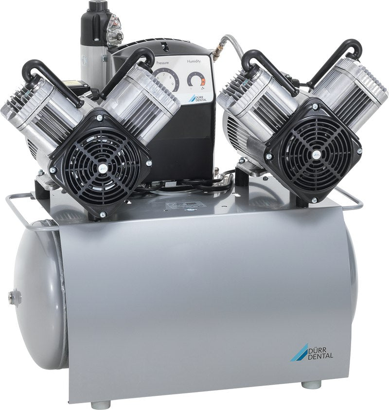 Duo Tandem Kompressor mit Membran-Trocknungsanlage und elektronischer Steuerung (netzwerkfähig). Die elektronische Steuerung der Aggregate orientiert sich am Verbrauch und vermeidet ein unnötiges paralleles Arbeiten beider Aggregate. Dies führt zu wirtschaftlicherem Betrieb und geringere Geräusch emission. Ebenso ist eine Anbindung an Computer-Software möglich. Der Druckbereich lässt sich einfach und komfortabel über die Touch-Funktion an der Steuerung einstellen.