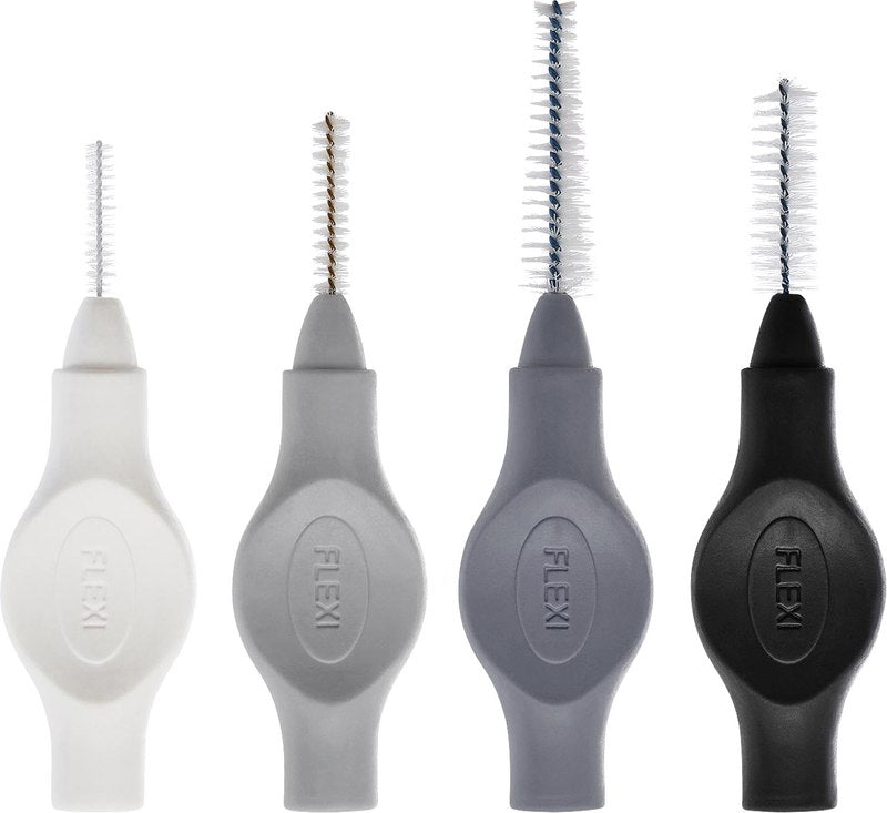 FLEXI® Ultrasoft PHD - Interdentalbürste mit sehr weichen Bürsten zur Pflege von empfindlichen Stellen, z.B. nach Zahnoperation, Chemotherapie oder für die Implantatpflege. FLEXI® Ultrasoft PHD hat einen weichen Phthalat-freien biegsamen Griff mit Kunststoff ummantelten Draht, für die präzise und schonende Reinigung. In 4 verschiedenen Gröβen und als 6 oder 25 Stück Packung erhältlich.
