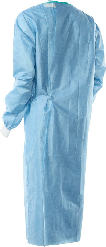 OP-Wickelmantel mit besonders breiter Überlappung der Rückenpartie welcher mit dem zum Patent angemeldeten Combitape®-Verschlusssystem an jeder Stelle der Mantelrückseite sicher verschließbar ist und eine flexible Anpassung des Halsausschnittes gewährleistet; mit grünem Halsausschnitt (unverstärkt) zur besseren Identifikation im OP; für Operationen mit geringem bis mittlerem Flüssigkeitsaufkommen; mit SMS-Einschlag & Papierhandtüchern; einzeln verpackt.