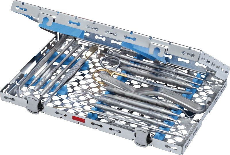 - Das neue und innovative lasergeschnittene Muster garantiert maximale Effizienz während des Reinigungs- und Sterilisationsprozesses und gewährleistet gleichzeitig Stabilität und Festigkeit der Kassette.