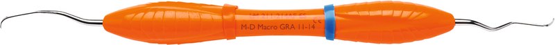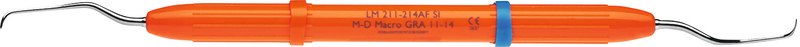 LM-DuraGradeMAX™ Macro-Gracey: Das lange Arbeitsteil des Standardmodells kombiniert mit dem verlängerten unteren Schaft des Minimodells. Ermöglicht einen exzellenten Zugang zu tiefen Zahnfleischtaschen im Interdentalraum.