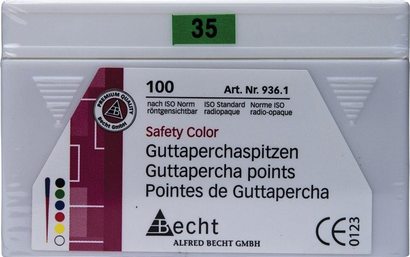 Optimale Maßgenauigkeit und eine lange Haltbarkeit zeichnen diese Spitzen aus. Guttaperchaspitzen sind formstabil, gewebeverträglich und röntgensichtbar. Hergestellt nach ISO-Norm mit 28 mm Länge; Folienversiegelung gewährleistet optimale Behandlungshygiene. Durch das Einfärben der Spitzen ist die Zuordnung zum WK-Instrumentarium vereinfacht.