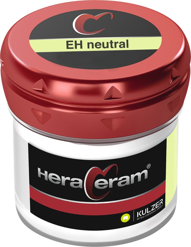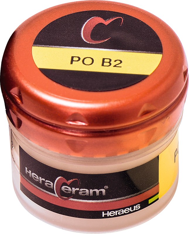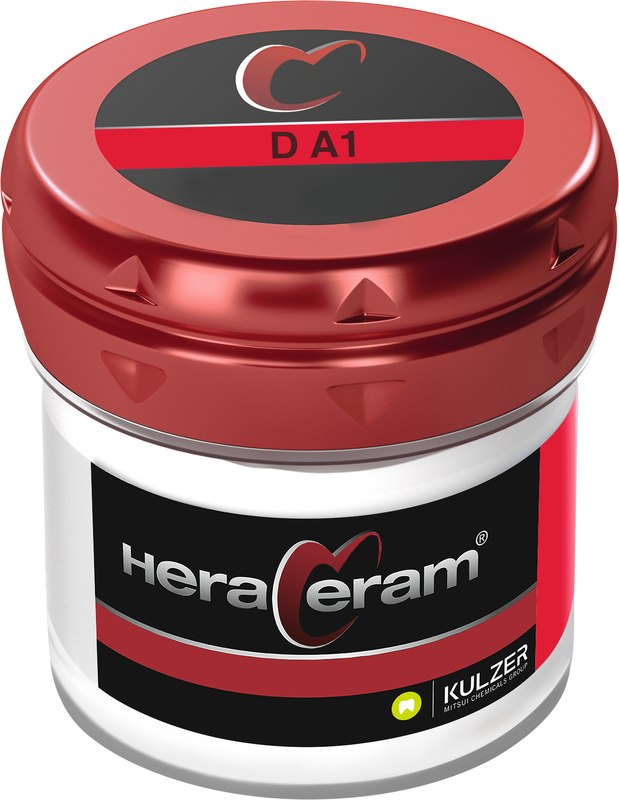 Hoch schmelzende Verblendkeramik. HeraCeram® ist die hochschmelzende Verblendkeramik für Aufbrennlegierungen in einem WAK-Bereich von 13,5 – 14,9 μm/mK. Aufgrund der niedrigen Brenntemperaturen von maximal 880 C können alle Legierungen in diesem WAK-Bereich sicher verarbeitet werden. Zur ästhetischen Gestaltung bietet HeraCeram® neben optimal auf einander abgestimmte Opaker, Dentin- und Schneidemassen ein umfassendes Sortiment an Individualmassen. Sie erzielen auch bei geringen Schichtstärken zuverlässige Farbergebnisse. Die Standfestigkeit der Massen und der geringe Brennschrumpf sorgen für eine hohe Formstabilität der Verblendung. Mit einer dichten, extrem glatten Oberfläche schützt HeraCeram® den Antagonisten und sorgt für hohe Plaqueresistenz und Gingivafreundlichkeit.