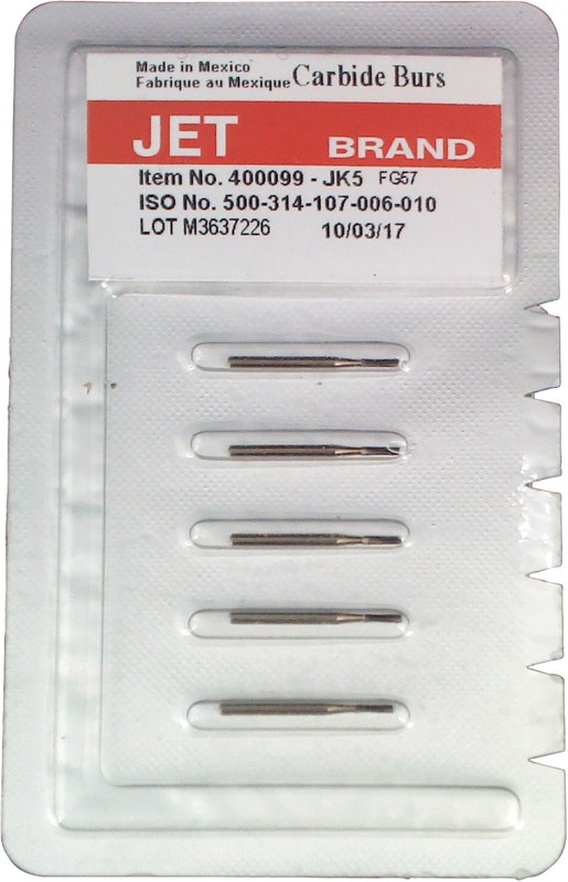 Jet Carbides™. Gerade Fissur - flaches Ende. Ergibt eine Präparation mit parallelen Wänden und planem Kavitätenboden. Hilfreich zur Schaffung des Randes einer Präparation. Querhiebe steigern die Schneideleistung und erleichtern die Präparation in Dentin bei niedrigeren Drehzahlen mit besserer taktiler Reaktion. Kuppelförmige Enden schaffen abgerundete innere Linienwinkel zur Verteilung okklusaler Kräfte. FG 256 ergibt abgerundete innere Linienwinkel und einen planen Boden.