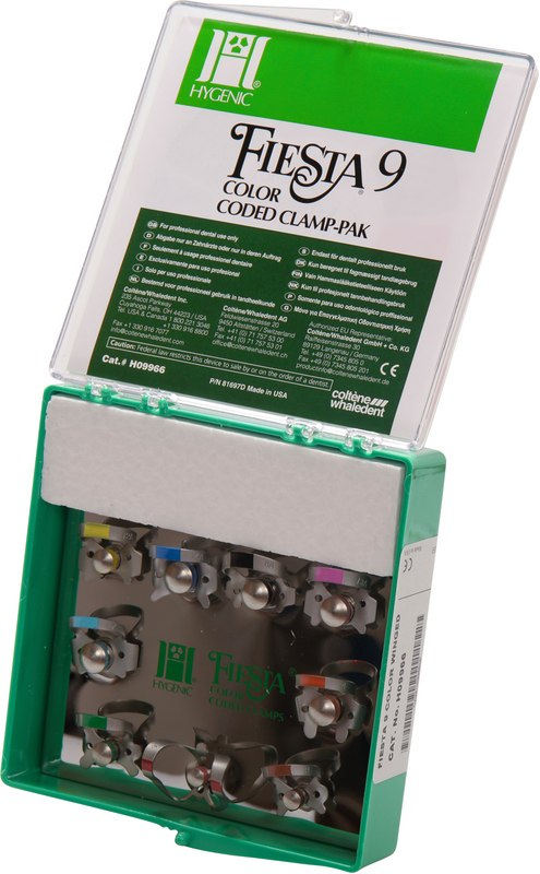 Fiesta® Klammern mit Farbcode. Jede Klammer ist individuell farblich gekennzeichnet für die einfache, fehlerfreie Anwendung. Für die praktische Aufbewahrung werden die Klammern auf die farblich passenden Halterungen des Steriständers aus rostfreiem Stahl platziert.