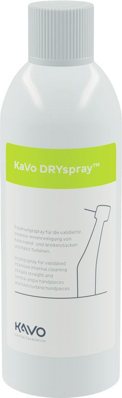 KaVo CLEANspray ist eine gebrauchsfertige, alkoholfreie Lösung und wird zur manuellen Wiederaufbereitung als nicht proteinfixierenden Reinigung von dentalen Hohlkörperinstrumenten angewendet. Nach der Reinigung und/oder Desinfektion wird der gebrauchsfertige KaVo DRYspray zur Trocknung der Innenflächen dentaler Hohlkörperinstrumente verwendet.