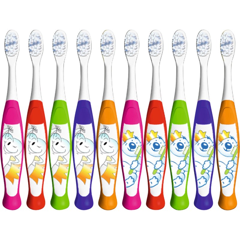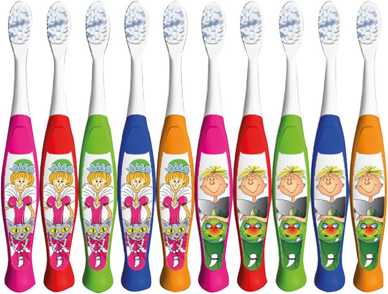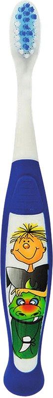 Diese Zahnbürste hat einen ergonomischen Griff und einen extrabreiten Fuß. Damit lässt sie sich kippsicher ablegen wenn die Zahncreme aufgetragen wurde. Geeignet für Kinder im Alter von 3-7 Jahren.