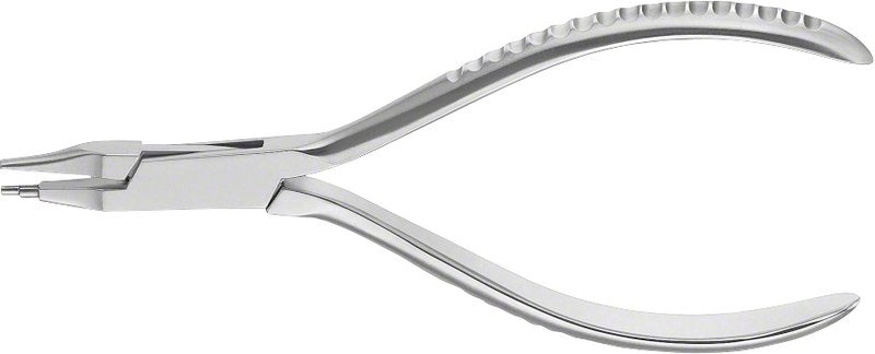 Für besonders feine Biegungen. Stabiles rundes Maulteil in den Stärken 2 und 2,5 mm (für den loop-Innendurchmesser). Flaches Maulteil zur guten Bogenfixierung gerieft. Ausreichend Platz zur sicheren und torquefreien Loop-Herstellung. Maximale Drahtstärke: .019 x .025".