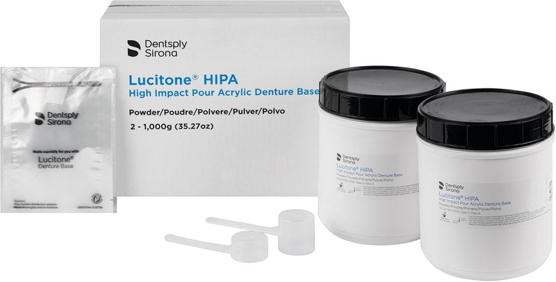Hochleistungs- Prothesenkunststoff. Lucitone® HIPA ist das erste Hochleistungs-Kaltpolymerisat. Es übertrifft die Standards für Werkstoffe mit erhöhter Schlagzähigkeit, wie es bisher nur bei Heißpolymerisaten bekannt war. Lucitone® HIPA wurde für die Herstellung von Voll- und Teilprothesen inklusive Implantat gestützter Deckprothesen, Reparaturen, Unterfütterungen sowie anderer dentaler Anwendungen entwickelt. Es ist in verschiedenen Farben, mit und ohne Adern erhältlich.