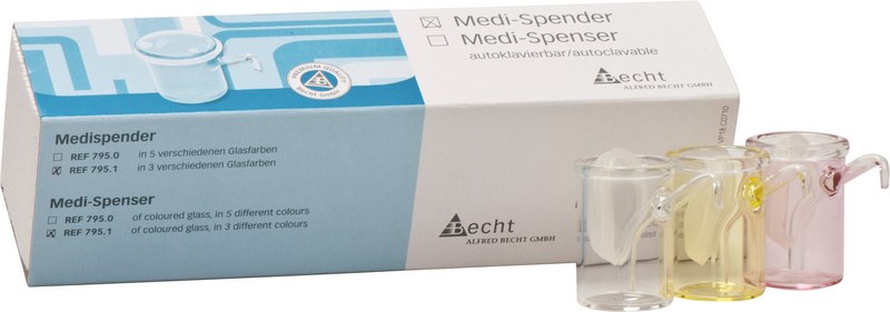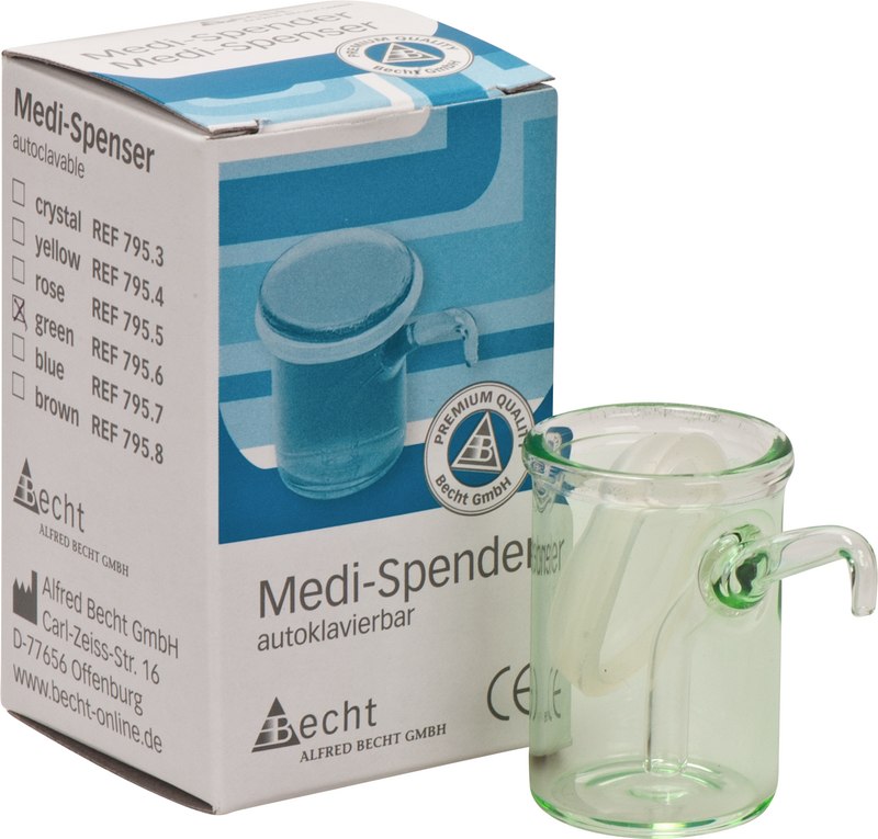 Dosierbare Medikamentengläschen, tropfgenau. Ermöglichen eine hygienische und sparsame Entnahme von Arzeimitteln. Unterschiedliche Einfärbung schützt vor Verwechslung der Arzeimittel. Eine Kontamination des Inhalts wird ausgeschlossen. Aus autoklavierbarem Glas.