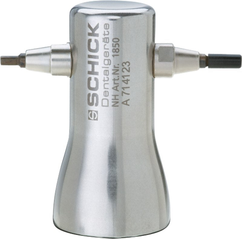 Bestens geeignet zum beschädigungsfreien Lösen von Teleskop- und Konuskronen sowie von abgebrochenen Ankerteilen. Durch die im Aufsatzteil erzeugten Schwingungen lassen sich Primär- und Sekundärteil ohne Beschädigung der empfindlichen Randzone trennen. Doppelniethammer mit Kunststoffkappe für besonders empfindliche Oberflächen.