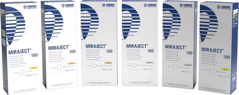 Die klassische Einmalkanüle für Zylinderampullen. Seit über 50 Jahren der Inbegriff für Qualität: über 400 Mio. Miraject-Kanülen auf höchstem Qualitätsniveau. Hergestellt unter strengsten Qualitätskontrollen. Erfüllt die höchsten Ansprüche der Injektionshygiene, jede Nadel mit Sterilitätskontrollsiegel. Dreifach-Lanzettenschliff – schmerzarm. Einstichmarkierung – Orientierung. Silikonbeschichtung – optimales Gleitverhalten.