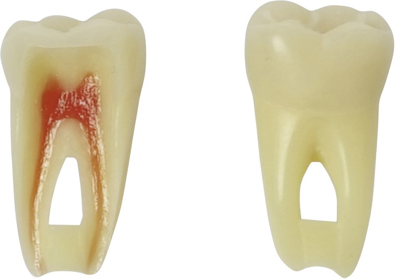 Übungszähne mit anatomischen Wurzeln, mit denen sich alle Schritte einer Wurzelkanalbehandlung simulieren lassen. Frontzähne 11 und 21 werden ohne Schraube geliefert, da diese im Modellsockel mit einem integrierten Verriegelungsmechanismus gehalten werden, während die Seitenzähne mit mitgelieferten Kunststoffschrauben befestigt werden. Ein Kronenteil aus dem bewährten frasaco-Zahnmaterial gibt bei Trepanationsübungen ein realistisches Bearbeitungsgefühl. Wurzelkanäle und Zahnwurzeln sind röntgenfähig und können einem natürlichen Zahn entsprechend befundet, aufbereitet und gefüllt werden.