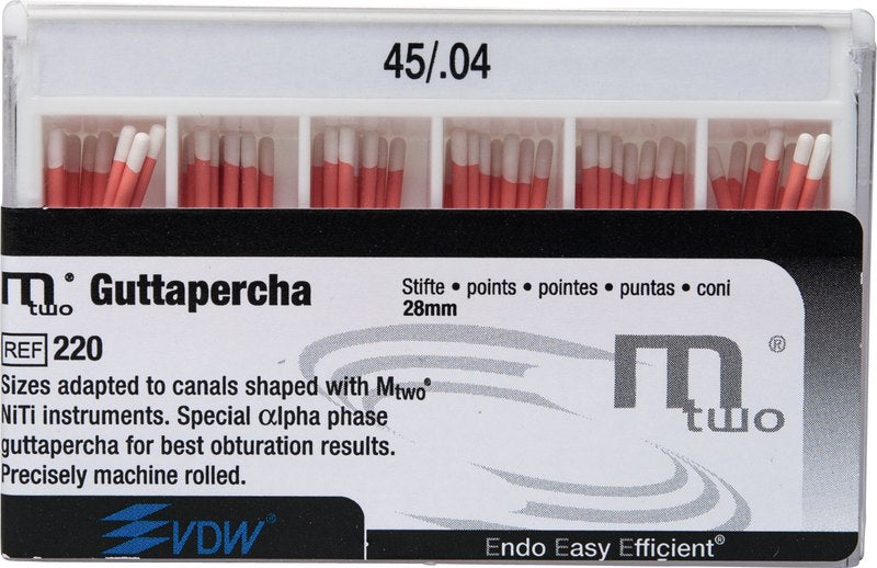 Größen und Konizitäten sind auf die Mtwo® Instrumente abgestimmt für einen dichten apikalen Verschluss