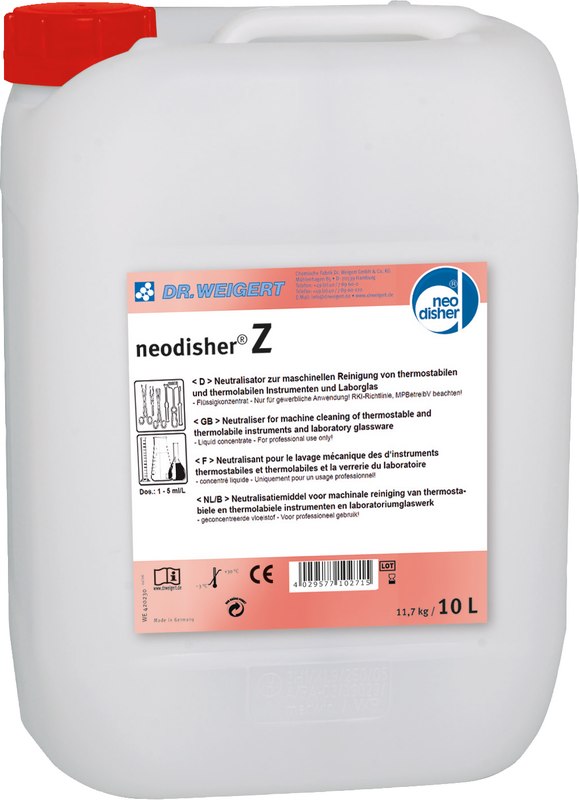 Saures Neutralisationsmittel, Flüssigkonzentrat. Frei von Tensiden, Phosphaten und Stickstoff. Zur Neutralisation verschleppter Alkalireste bei der maschinellen Aufbereitung. Auf Basis organischer Säuren.
