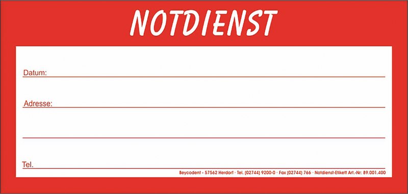 „Notdienst“ Etiketten verbessern Sie die Patientenkommunikation und tragen zu einem reibungslosen Praxisablauf bei.