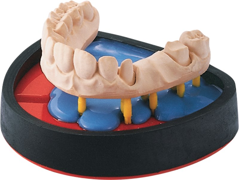 Durch intensive Einfärbung gute optische Differenzierung zwischen Zahnkranz und Sockel