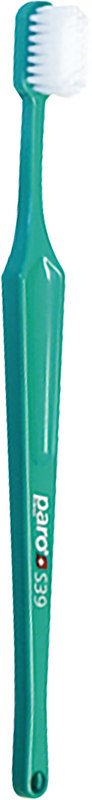 Eine Vielzahl hochwertiger, abgerundeter Nylon-Borsten entfernen spürbar gründlich Plaqueablagerungen und garantieren eine hochwirksame und zahnfleischschonende Reinigung. Durch den kompakten Bürstenkopf mit 39 Borstenbüschel auf 5 Reihen und die schmale Halspartie lassen sich auch schwer zugänglichen Stellen mühelos erreichen. Die Bürstendichte ist dabei so berechnet, dass sich die Bürste gut auswaschen und trocknen lässt. Am Griffende können sämtliche paro® ISOLA System F Ansätze für eine individuelle Zahnzwischenraumpflege eingesetzt werden.