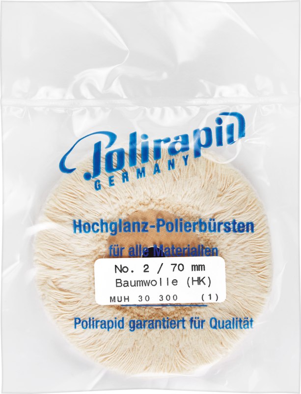 Plüschmullen aus Baumwollgarn mit konischem Kunstoff (KK)- oder Holzkern (HK). 100 % Baumwolle in verschiednen Durchmessern und Stärken. Rundbürsten mit Baumwollplüsch für die Hochglanzpolitur sämtlicher Metalle und Kunststoffe.