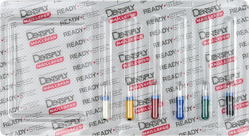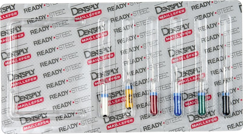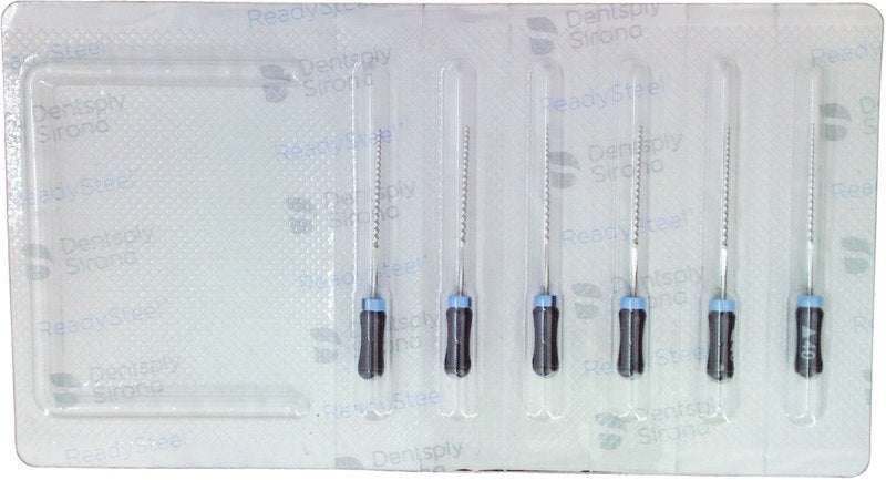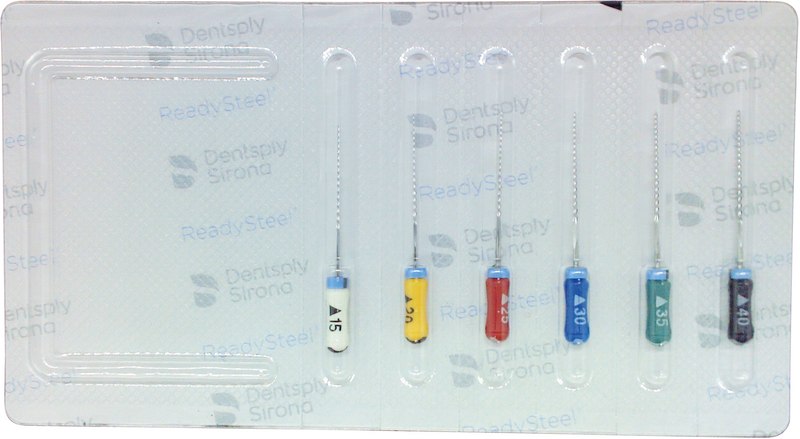 Flexo-Instrumente aus Edelstahl verfügen dank ihres dreieckigen Querschnitts über eine größere Flexibilität im Vergleich zu herkömmlichen Handinstrumenten. Die Spitze der Instrumente ist abgerundet und nicht schneidend. Bis Größe 030 auch in 18 mm lieferbar. K-Flexoreamer 21, 25 und 31 mm Ref. A 011C.