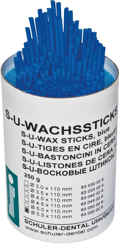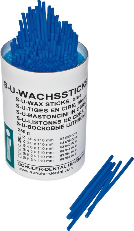 Harte, jedoch durch Erwärmung verformbare Wachssticks für Gusskanäle und Querbalken. Sie erleichtern das Abheben von Gussobjekten und verhindern unbeabsichtigte Verformungen. Die Gussformen bleiben beim Ausschmelzen daher unbeschädigt. Länge 110 mm.