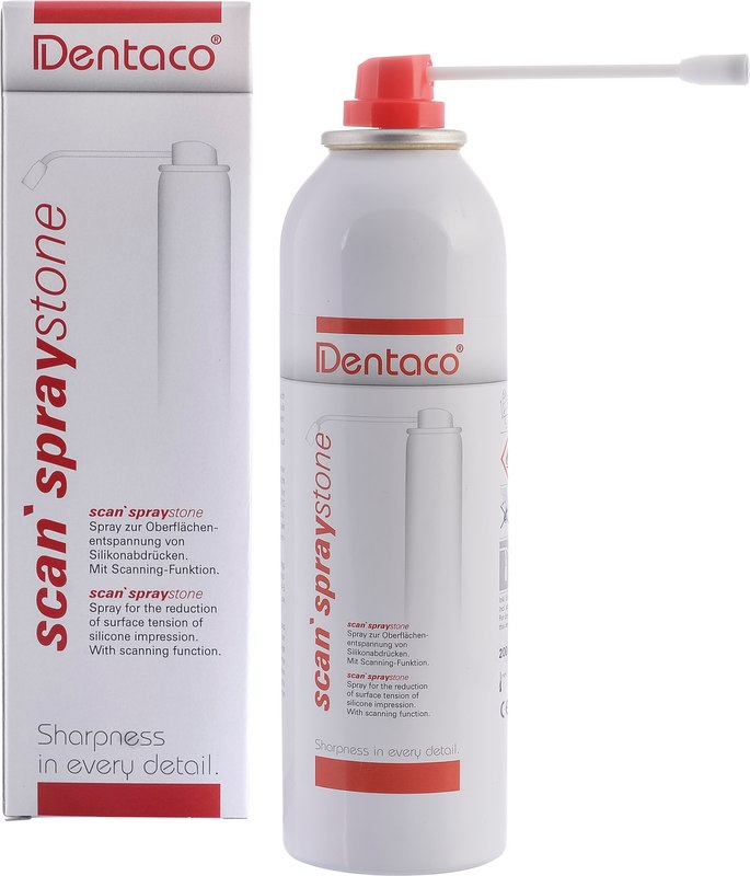 Das feinste extraorale Scanningspray für das Dentallabor. Extrem feine Partikelgröße 0,19 μm, ermöglicht eine extrem feine Sprayschicht < 2 μm. Trocknet schon beim Sprühen aus. Schnell aufgetragen, leicht entfernt. So fein, kann auch als Anti-Blasen-Spray beim Ausgießen von Silikonabdrücken verwendet werden.