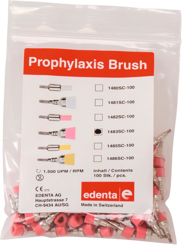 Nylon-Bürsten mit Schraubgewinde zur Beseitigung von Zahnbelägen, mit Polierpaste. Zum Einschrauben in alle bekannten Prophylaxe-Winkelstücke oder in das wiederverwendbare Schraub-Mandrell 4039RA. Großer Kelch - Zur Großflächigen Politur in Front- und Seitenzahnbereichen. Kleiner Kelch - Zur Politur von Front- / und Zahnhals-Bereichen sowie von okklusalen Reliefs in Seitenzahnbereichen.