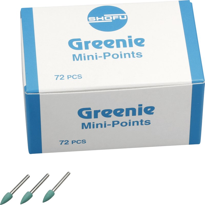 Brownie Greenie Supergreenie Die Silikonpolierer mit integrierten Poliermitteln sorgen für ein schnelles und brillantes Polieren von Edelmetallen und Amalgam. Brownies dienen zur Vorpolitur, Greenies werden im Anschluss zur Glanzpolitur eingesetzt; mit den Supergreenies (gelbe Schaftmarkierung) wird eine Hochglanzpolitur erreicht. Der Hochglanz entsteht durch die Verwendung der mit hochwertigen Schleifmitteln imprägnierten Silikonpolierer selbst; der Einsatz einer zusätzlichen Polierpaste ist nicht notwendig.