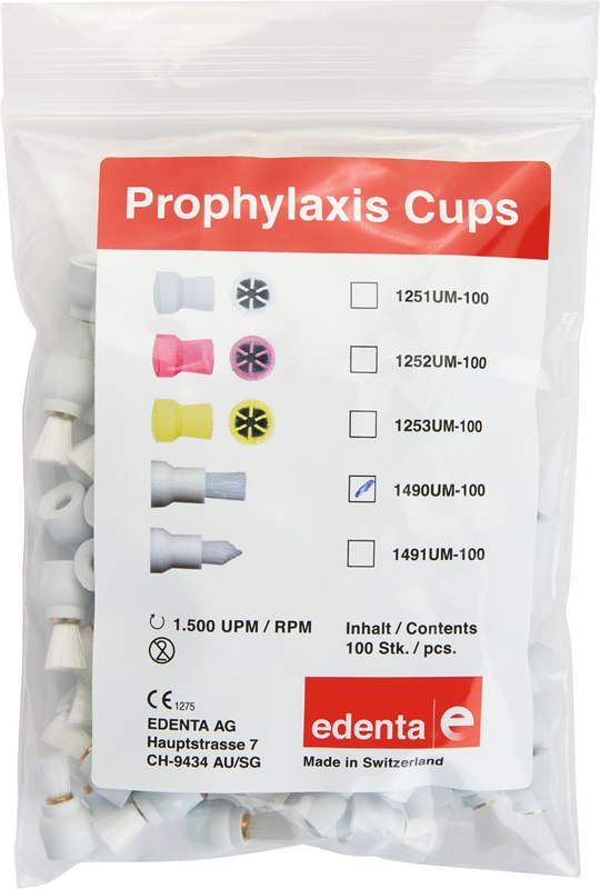 Snap-On Bürsten zur Beseitigung von Zahnbelägen, mit Polierpaste. In Verwendung mit dem Snap-On Mandrell 4037RA. Kleiner Kelch - Zur Politur von Front- / und Zahnhals-Bereichen sowie von okklusalen Reliefs in Seitenzahnbereichen. Spitze - Zur Politur von tiefen okklusalen Fissuren im Seitenzahnbereich.