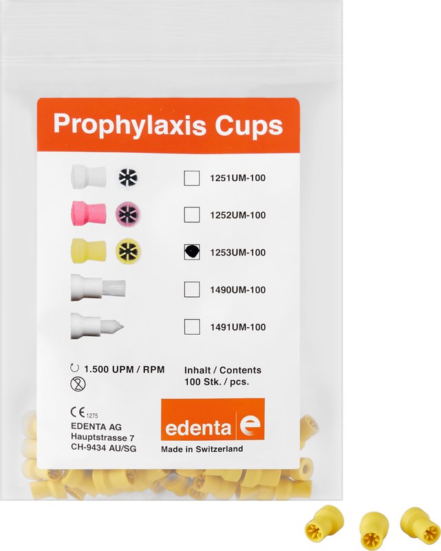 Snap-On Polierer mit Spritzschutz, ohne Abrasivstoffe zur Beseitigung von Zahnbelägen, mit Polierpaste. In Verwendung mit dem wiederverwendbarem Snap-On Mandrell 4037RA. Optimale Drehzahl 1.500 U/min. Cup weiß - Standard Polierer, zum Entfernen von Zahnbelag und zum Polieren. Cup rosa - Weicher Polierer, zum Entfernen von Zahnbelag in Sulkusnähe, zur Schonung des Weichgewebes. Cup gelb - Harter Polierer, zum Entfernen von starkem Zahnbelag und Verfärbungen.