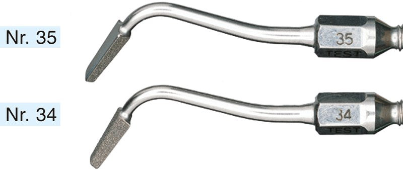 Ideale Kavitätenränder für alle CAD/CAM-Systeme wie EVEREST, CEREC, etc. lateraler Winkel 30°, zervikaler Winkel 90°, Diamantierung D 46. Wichtiger Hinweis: Spitzen mit dem Zusatz "A" dürfen durch das kürzere Gewinde nur auf dem KaVo SONICflex quick 2008L/LS verwendet werden. Spitzen ohne die zusätzliche Kennzeichnung mit dem Buchstaben "A" dürfen nur auf dem KaVo SONICflex 2000N/L und 2003L/LX/NX verwendet werden.