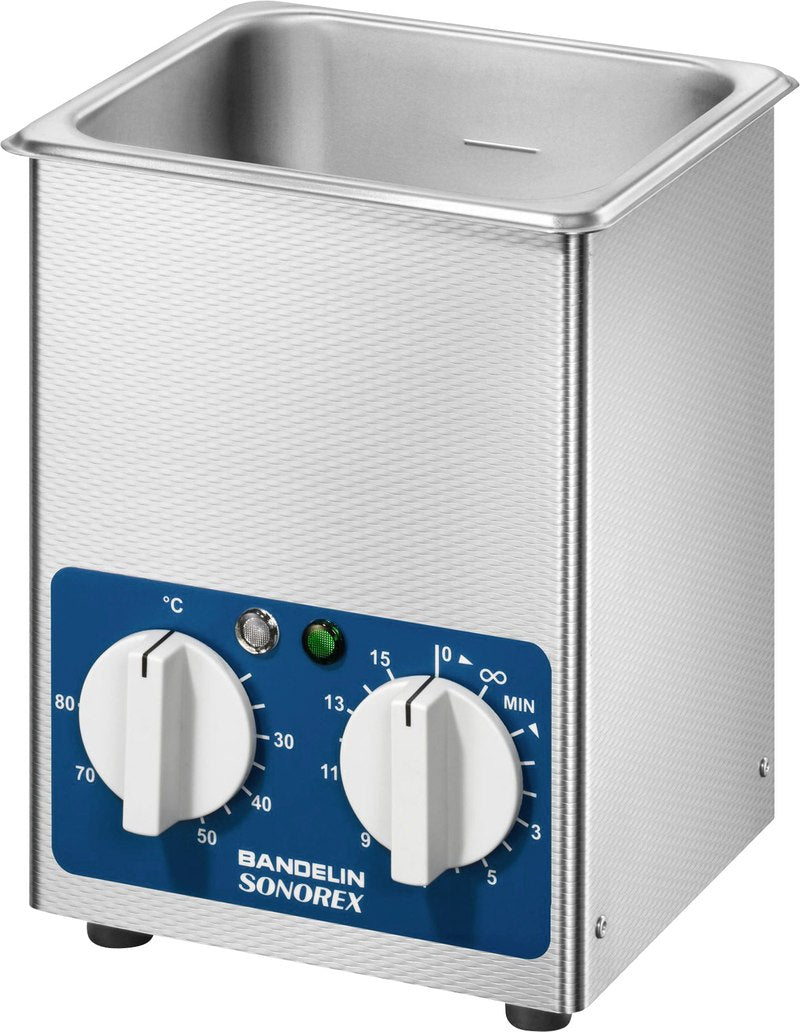 Hochleistungs-Ultraschallreiniger mit Heizung für den Einsatz in Praxis, Labor und Werkstatt. Die bewährten und besonders robusten SONOREX Ultraschallbäder reinigen gründlich und schonend durch intensive Kavitationsblasen auch an den schwer zugänglichen Stellen der Reinigungsobjekte. Eine nutzerfreundliche Drehgriffbedienung dient zur einfachen Einstellung der Reinigungsdauer und Badtemperatur. Durch die vollautomatische SweepTec-Funktion werden stehende Wellen im Ultraschallfeld verhindert und eine besonders gleichmäßige Reinigung erzielt. Für eine optimal abgestimmte Ultraschallreinigung sind passende Körbe, Deckel und Reinigungs- und Desinfektionskonzentrate als Zubehör erhältlich.