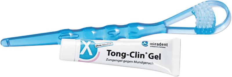 Perfekt aufeinander abgestimmtes Zungenreinigungsset. Zungenreiniger mit Doppelfunktion (Konkav-Schaber mit kurzem Borstenfeld) entfernt sanft Zungenbeläge. Zungenreinigungsgel mit sanftem, pflegendem Reinigungseffekt (ohne Alkohol). Der Zungenreiniger besitzt eine hygienische Schutzkappe.