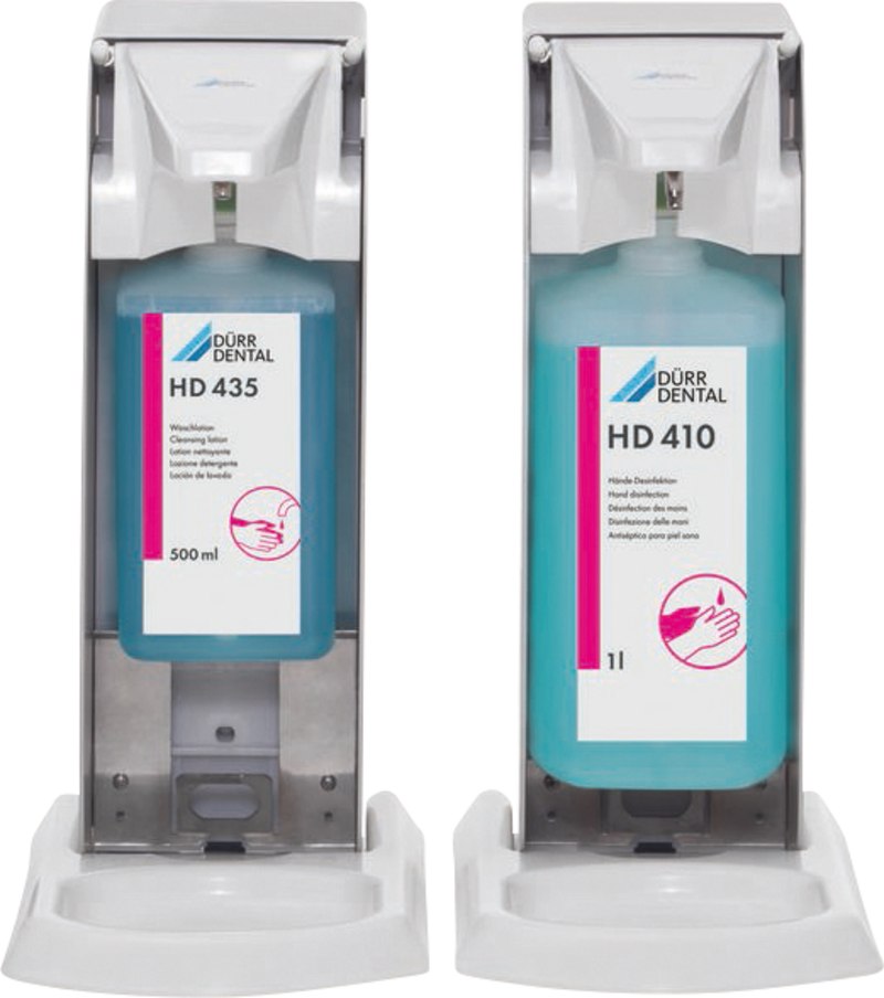 Batteriebetriebener Sensorspender zur handberührungsfreien, hygienischen Applikation von Händepräparaten.