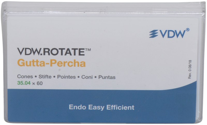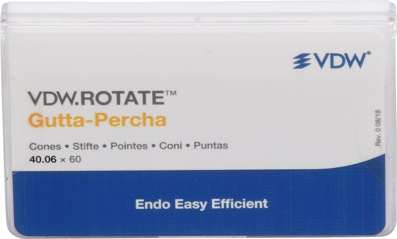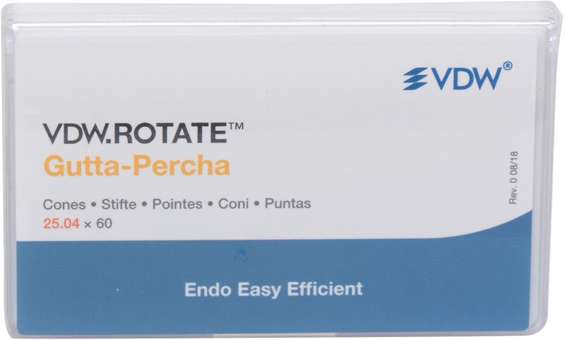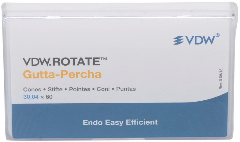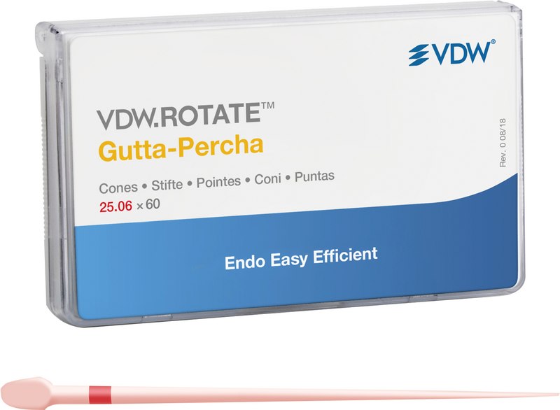 Ergänzend zu den VDW.ROTATE™ Feilen bieten wir ein komplettes Produktsortiment von der Aufbereitung bis zur Obturation an. Guttapercha ist in Taper .04 und .06 in verschiedenen ISO-Größen erhältlich.