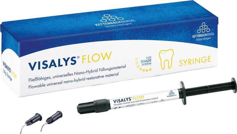 Visalys® Flow ist ein lichthärtendes, fließfähiges Füllungsmaterial, das die bewährte Komposit- mit der innovativen Nano-Technologie kombiniert. Das Material eignet sich für die Füllungstherapie im Front- und Seitenzahnbereich. Aufgrund seiner niedrigen Viskosität weist Visalys® Flow eine sehr gute Benetzung und Adaption an die Kavitätenwände auf. Das speziell entwickelte Flex Shade System ermöglicht effizientes Arbeiten mit nur 7 Farben für ästhetische Restaurationen. Der begehrte Chamäleon-Effekt der neuen Nano-Hybrid-Materialien hilft Ihnen bei der Auswahl der richtigen Farbe im Handumdrehen.
