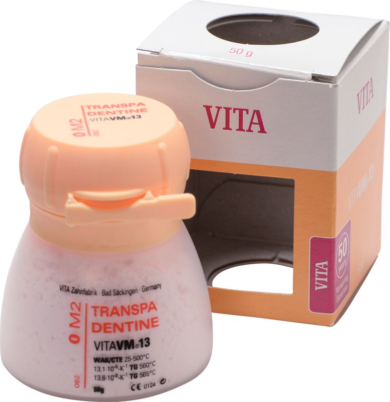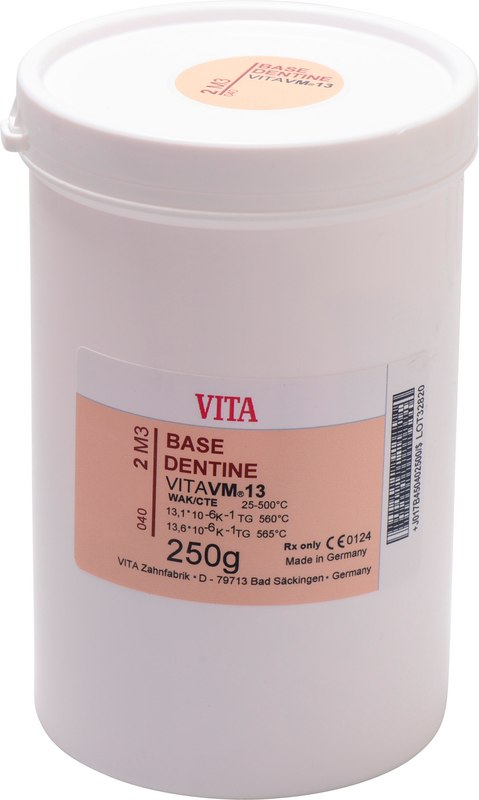 VITA VM® 13 ist eine hochästhetische Feinstruktur-Feldspat-Keramik, die perfekt auf den WAK-Wert von klassischen Aufbrennlegierungen (ca. 13,8 – 15,2 µm/mK) abgestimmt ist. Völlig unabhängig davon, ob die klassischen Legierungen gegossen, gefräst oder gesintert werden. VITA VM® 13 ist eine echte Alternative zur Vollkeramik – und ist überall dort zu Hause, wo der Maskierungseffekt eines Metallgerüsts erwünscht ist. Die Brenntemperatur (880°C Dentinbrand) bietet Ihnen eine große Verarbeitungssicherheit, im speziellen für Legierungen mit einem niedrigen Soliduspunkt (<1.100°C). Hauptbestandteile sind sortenreine Kali- und Natronfeldspate, welche eine brillante Farbwirkung und höchste Biegefestigkeitswerte mit sich bringen. Dank der homogenen, geschlossenen Oberfläche können Sie VITA VM® 13 besonders in situ hervorragend beschleifen und polieren. Dies führt zu glatten und dicht geschlossenen Oberflächen. Die Plaqueanhaftung an der Keramikoberfläche wird deutlich reduziert und unterstützt somit den Patienten bei der Pflege des hochwertigen Zahnersatzes. VITA VM® 13 ist eine hochwertige Systemkomponente des innovativen VITA VM Konzepts – der universellen Lösung für alle gängigen Indikationen. Ob Metallkeramik, Vollkeramik oder Komposit: die Möglichkeiten sind grenzenlos! Für die individuelle Finalisierung stehen Ihnen VITA AKZENT Plus und VITA INTERNO Malfarben zur Verfügung. Vorteile