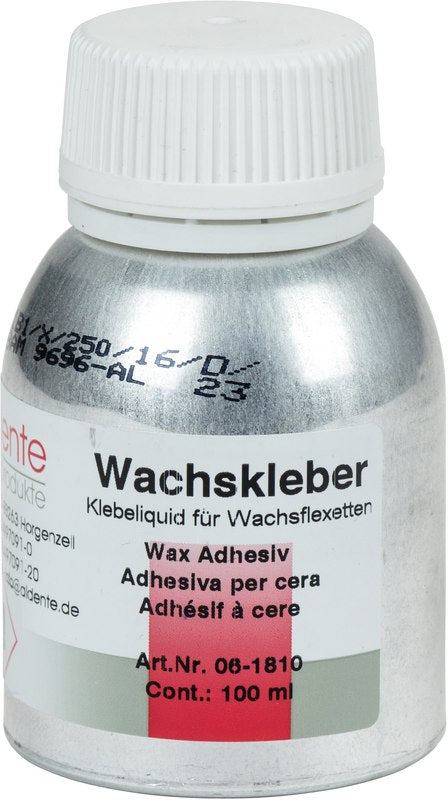 Wachskleber ist ein rückstandsfrei verbrennender Flüssigkleber bei Verwendung von Wachsfertigteilen auf Einbettmassemodelle. Der Kleber wird dünn aufgetragen, um das Anhaften der Fertigteile am Duplikat Modell zu gewährleisten.